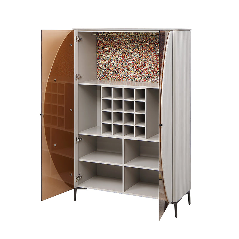 Gaya sebuah restoran seringkali tersembunyi dalam sebuah perabot yang menggabungkan fungsi dan nilai estetika. Lemari anggur ini, dengan warna abu-abu kelas atas yang stabil, cat mengkilap yang indah, dan sentuhan akhir dekorasi perangkat keras, dengan sempurna menginterpretasikan keanggunan dan tekstur desain Italia. Lemari ini mengintegrasikan penyimpanan, pajangan, dan pengorganisasian anggur, menanamkan suasana modern mewah yang sederhana pada ruang makan dan menjadi item inti yang menunjukkan cita rasa kehidupan.