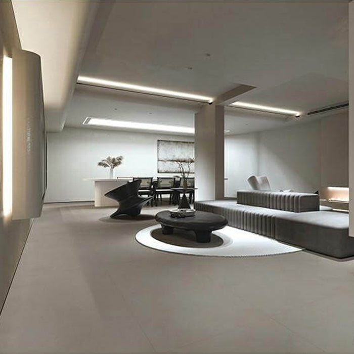 In modern home decoration, tiles, as an important carrier of space decoration, have an undeniable influence on the creation of the overall atmosphere due to their texture and style. This 750*1500mm matte tile is designed based on a large size specification, ingeniously balancing the reserved style of matte with the soft glow of soft light. Whether it is the public areas of the living room and dining room, or the private Spaces of the bedroom, kitchen and bathroom, it can blend in naturally, outlining a simple yet elegant life picture for families that value quality living. Compared with traditional small-sized tiles, the golden ratio specification of 750*1500mm can minimize the gap between the floor and the wall to the greatest extent, visually stretching the vertical and horizontal dimensions of the space, making small-sized apartments appear more spacious and large-sized ones more grand. Whether it is spread throughout the entire house or partially matched, it can create an overall unified and simple aesthetic, avoiding the messy feeling brought by fragmented decoration, and perfectly aligning with the modern home design concept of "less is more".