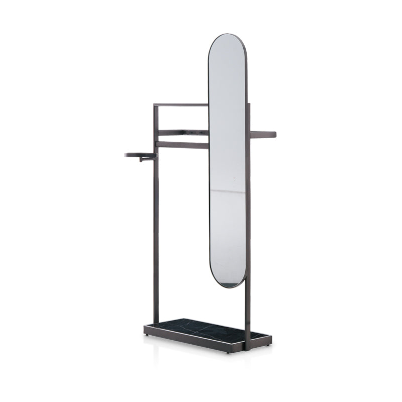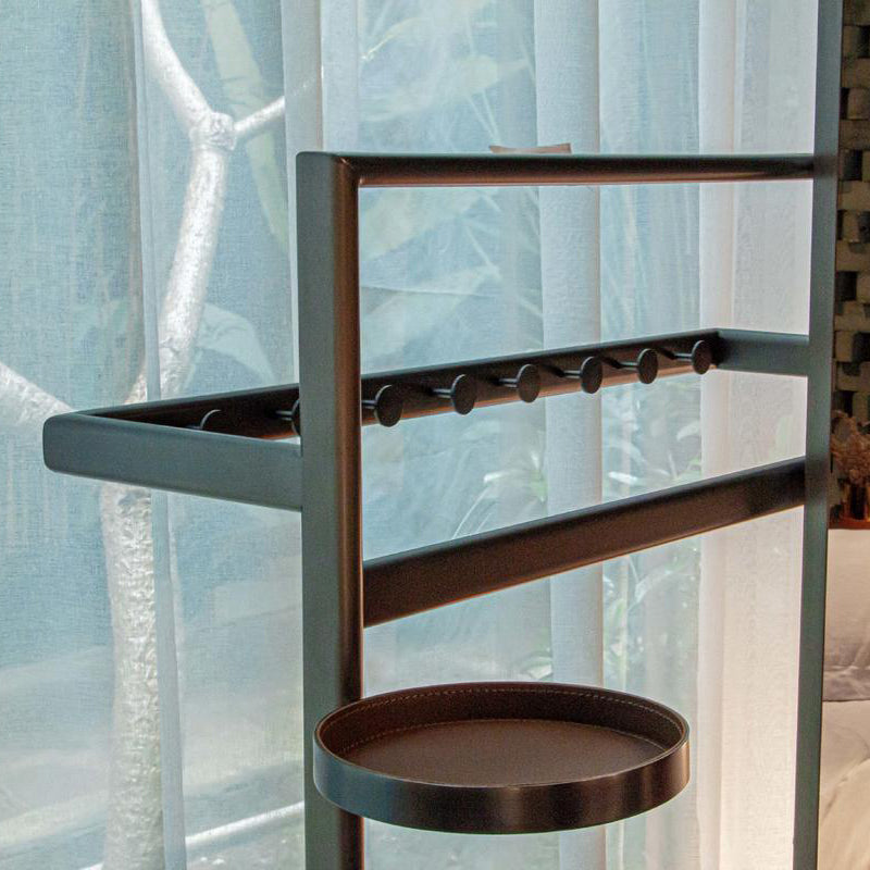 ในฐานะพื้นที่ส่วนตัวสำหรับการพักผ่อน ที่แขวนเสื้อผ้าที่ผสมผสานความสวยงามแบบมินิมอลลิสม์เข้ากับฟังก์ชันการใช้งานที่ลงตัว คือกุญแจสำคัญในการเพิ่มความเป็นระเบียบและความหรูหราให้กับห้องนอน ที่แขวนเสื้อผ้าสมัยใหม่นี้สร้างขึ้นจากโครงสแตนเลสสตีลชุบสีเทาไทเทเนียมแบบขัดเงา เพื่อสร้างรูปทรงที่ดูเรียบร้อย เสริมด้วยความนุ่มนวลอย่างอ่อนโยนของหนังม้าและน้ำหนักที่มั่นคงของฐานหินธรรมชาติ ผสานฟังก์ชันการแขวนเสื้อผ้าและการจัดเก็บสิ่งของเข้าด้วยกัน ตีความความรู้สึกแบบมินิมอลลิสม์สมัยใหม่ระดับไฮเอนด์ผ่านการผสมผสานของวัสดุต่างๆ และตอบโจทย์ความต้องการด้านสไตล์ของห้องนอนเรียบง่ายได้อย่างสมบูรณ์แบบ