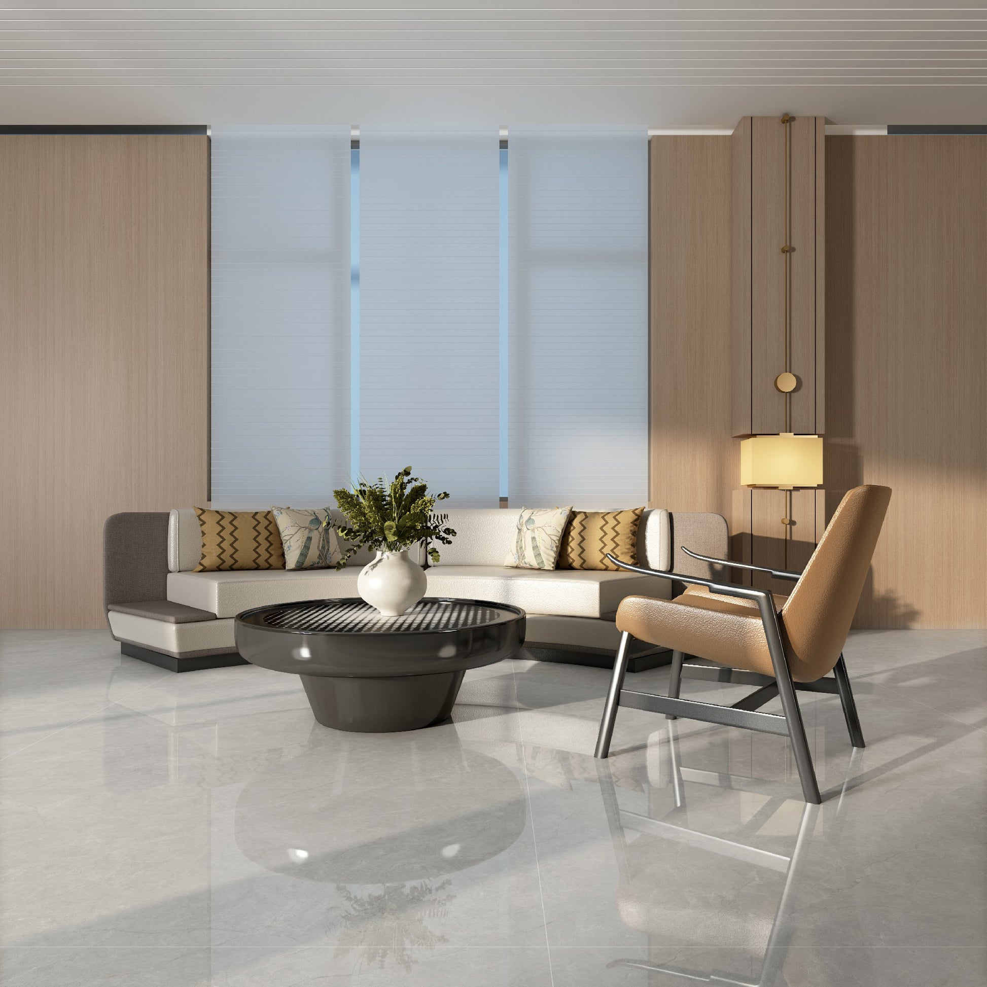 เราดึงเอาความงดงามของพื้นผิวหยกธรรมชาติออกมา ด้วยสุนทรียภาพที่เหมือนหยกคือ "เรียบง่าย สง่างาม และเรียบเนียน" เราจึงสร้างสรรค์กระเบื้องสีเทาคุณภาพสูง ด้วยพื้นสีเทาอ่อนและเส้นสายที่นุ่มนวลราวกับผ้าไหม ด้วยลวดลายที่เชื่อมต่อกันอย่างไม่รู้จบทั้งหกด้าน ทำให้บ้านทั้งหลังเชื่อมต่อกันอย่างราบรื่นไร้ช่องว่าง เป็น "พื้นฐานการแต่งหน้าพื้นที่" ที่ใช้งานได้หลากหลาย สำหรับสไตล์มินิมอลสมัยใหม่ ความหรูหรา ความเรียบง่าย และสไตล์จีนยุคใหม่ เงียบสงบแต่ไม่น่าเบื่อ สว่างไสวโดยไม่แสบตา