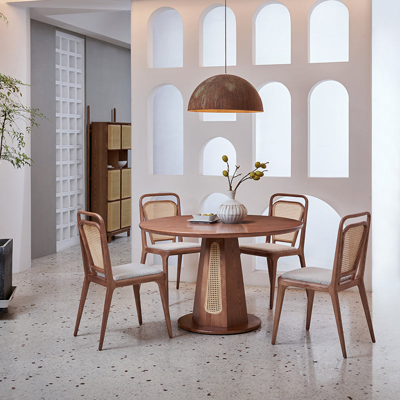 Adhering to the design concept of wabi-sabi, it discards complex decorations and sketches the outline of the dining table with minimalist lines, presenting a natural and simple beauty. There are no bright colors, only the natural tones of raw wood, giving people a sense of tranquility and stability. The rectangular dining table has neat lines and is suitable for matching with benches or chairs, saving space. It is made of FAS grade ash wood, with clear and fine wood grain, hard texture, corrosion resistance, high density, fine touch and soft and stable color. To preserve the natural texture and feel of solid wood, a warm, clear and odorless eco-friendly paint is selected. The paint surface is dry and fine, with uniform and consistent luster, and is healthy and odorless. By using manual grain matching and splicing, it not only ensures the inherent texture and grain of the solid wood but also effectively enhances the physical strength of the board, prevents warping and cracking of the board, and makes the grain more smooth. The thickened table legs design ensures stability and reliability, with strong load-bearing capacity. The space under the table is spacious, allowing you to freely stretch your legs. It offers two size options to meet the dining needs and space layouts of different families.