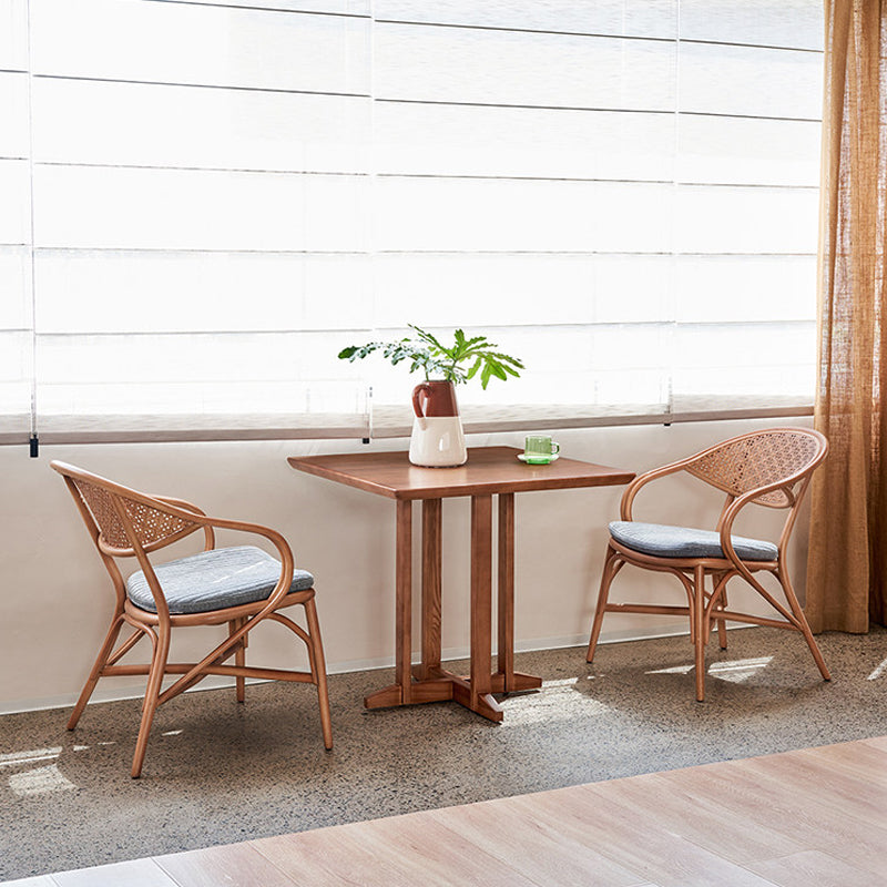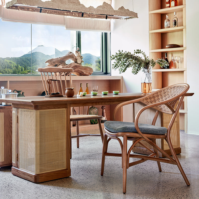 The frame is made of high-quality ash wood, which is characterized by its hard texture and clear grain, ensuring the stability and durability of the chair. The seat surface is hand-woven from imported agate rattan. The natural rattan material has good breathability and flexibility, providing a comfortable sitting experience and is environmentally friendly and healthy. Integrating modern Chinese style, it not only retains the elegant charm of Chinese furniture but also retains the simplicity and fashion of modern design. Its shape features smooth lines, giving people a sense of simplicity and grandeur. Using hand-woven rattan techniques, the artisans meticulously weave every detail, with fine and even stitches, demonstrating superb craftsmanship. This handcrafted method not only gives the chair a unique texture but also endows it with certain artistic value. The chair is ergonomically designed. The curvature of the backrest and the seat depth have all been carefully considered, which can well conform to the human body's curves, provide comfortable support and reduce the fatigue caused by prolonged sitting. It is suitable for placement in Spaces such as balconies, living rooms, studies or courtyards. It can be used as a chair for leisure reading, tea tasting and relaxation, adding a natural and leisurely atmosphere to the home environment.