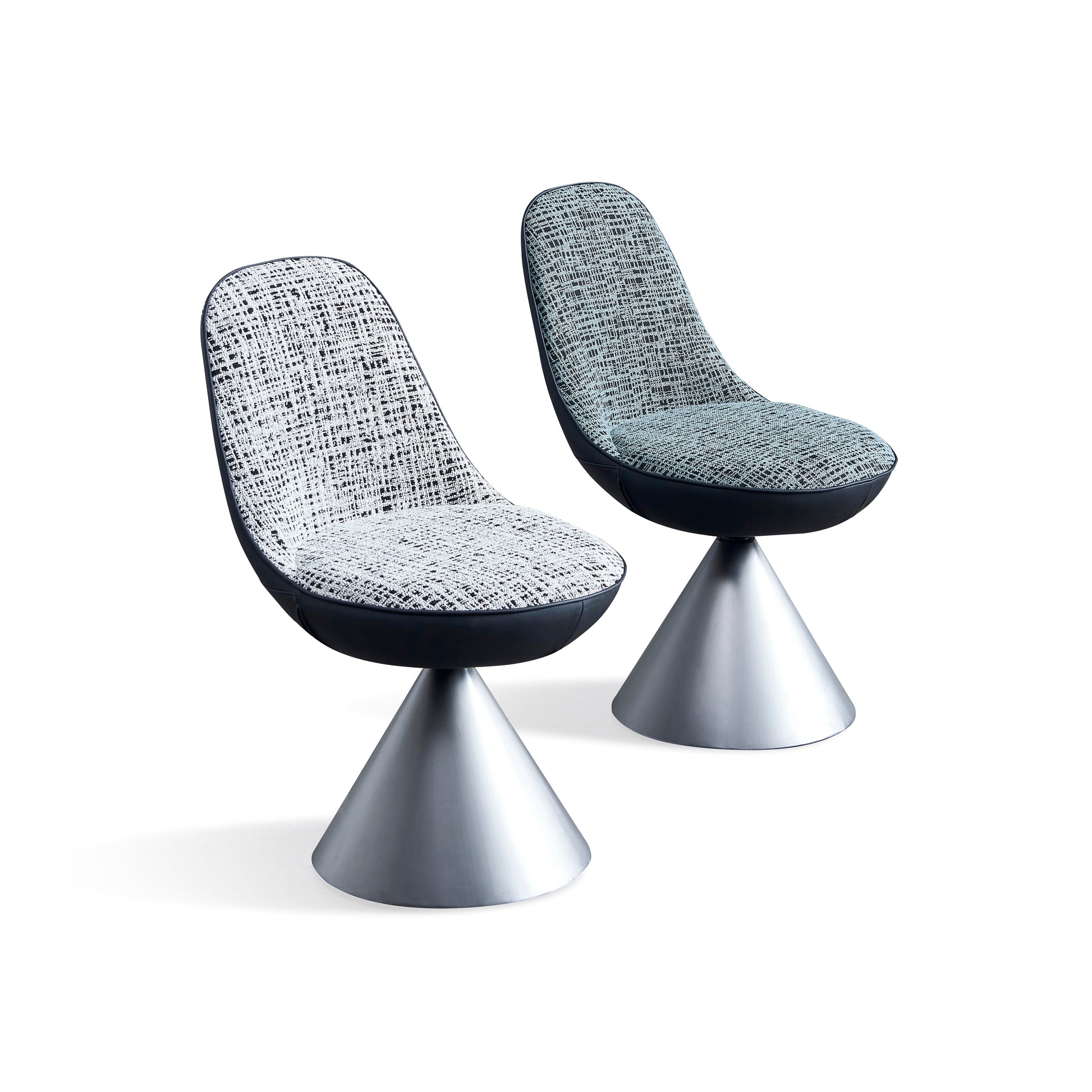 The classic "tulip base" combined with the streamlined one-piece chair body recreates the futuristic feel of the retro space age. It can be freely rotated 360°, balancing design and interactivity. The chair seat is made of black and white velvet with a textured feel, which is breathable and dirt-resistant to touch. The edge of the chair is spliced with matte black soft padding, and the base is a conical design with a metallic texture, which is both stable and light. It is suitable for the living room leisure area and study with retro and modern minimalist styles. It can also be used as a photo-taking seating fixture in commercial Spaces (exhibition halls, trendy toy stores). Whether placed alone or in pairs, it looks great.