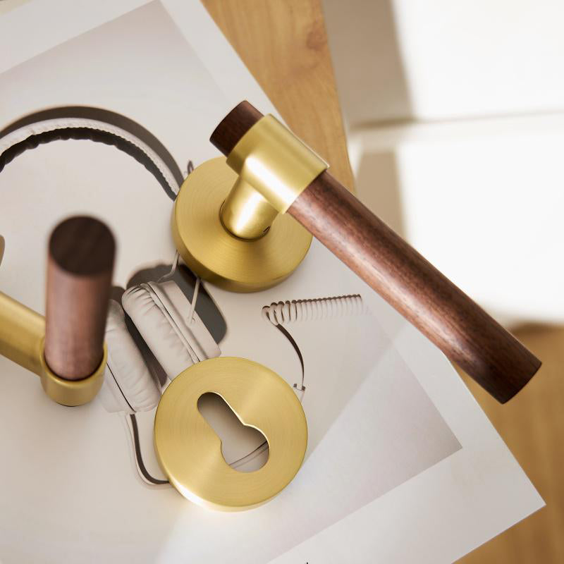 The handle is made of a combination of walnut wood and brass. The walnut wood handle has a clear natural grain and a fine, warm touch. The brass part has a warm color and excellent wear resistance and corrosion resistance. The lock core, lock tongue and lock body are all made of copper, which is sturdy and durable, ensuring the safety and service life of the door lock. Blending the new Chinese style with the modern Nordic style, it combines the elegant charm of the new Chinese style with the simple and fashionable style of the modern Nordic style. The overall lines are smooth and flowing, the shape is round and exquisite, without too many complicated decorations, yet it exudes a sense of refinement everywhere. The thickness of the compatible door is 35-50mm, and the opening direction is universal, which can meet the installation requirements of most indoor double-leaf double doors. It is equipped with a standard golden 72 silent lock body, which is quiet and noise-free when opening and closing the door, creating a serene environment for the bedroom. The magnetic lock body can also be replaced for free for convenient use. It comes with four copper keys, ensuring safety and reliability.