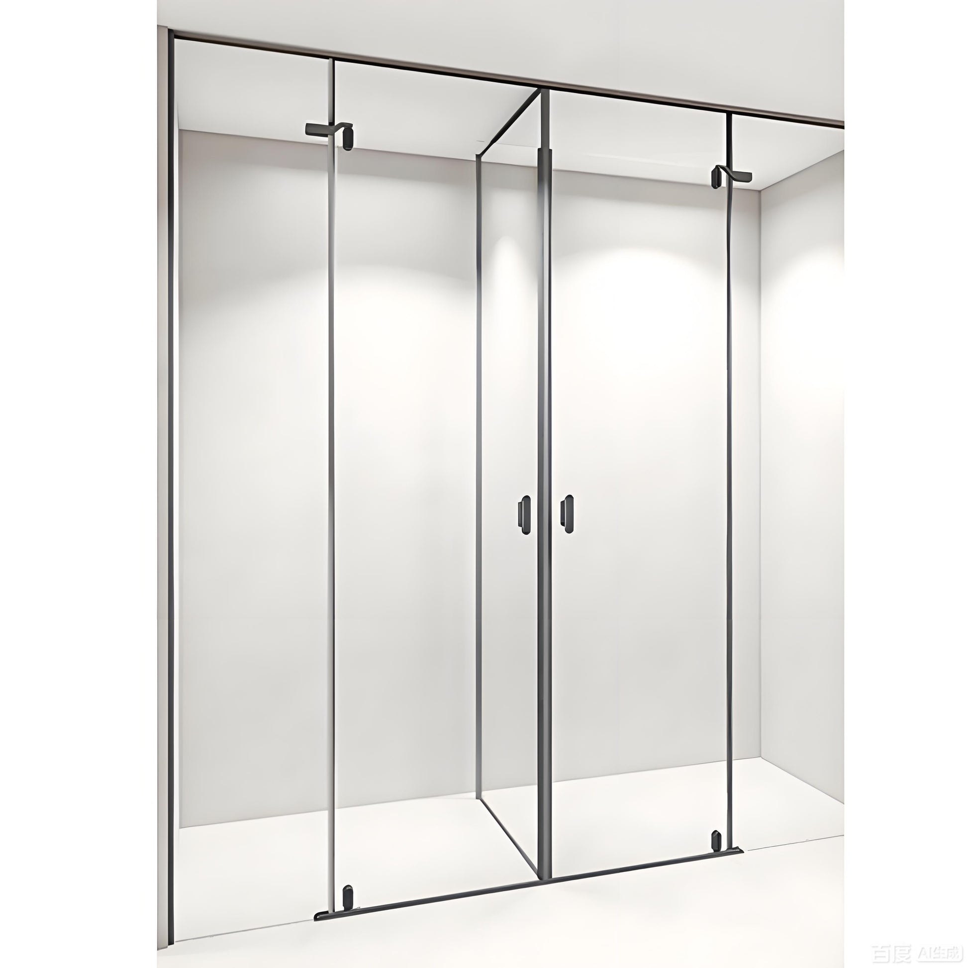 Design features: It adopts an inward-opening/double-door structure, paired with a simple metal frame and transparent glass. It supports customization for large heights (2200-2800mm) and is suitable for high-ceiling bathrooms. The opening and closing method is flexible and does not occupy space in the shower area.
