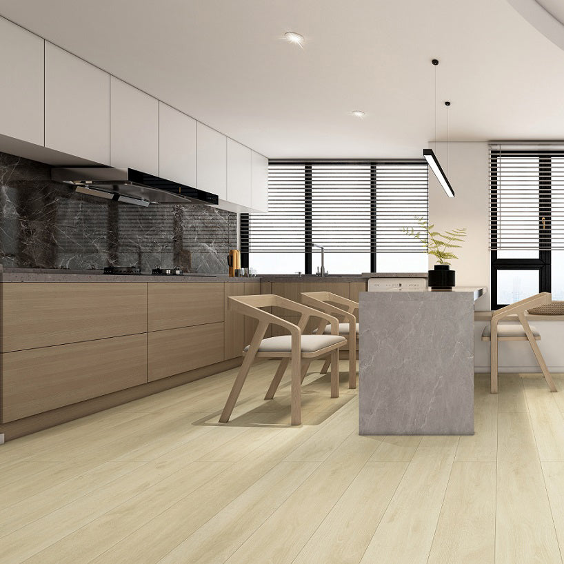 This laminate flooring replicates the texture of real wood, with even the knots and growth rings clearly visible. Visually, it is almost indistinguishable from solid wood flooring. The long strip design of 1380*193*7mm can stretch the space vertically. After laying it, a small-sized apartment will appear 10 square meters larger. It is suitable for simple, natural wood, northern European, new Chinese and other styles. When laid throughout the living room, bedroom or balcony, the visual effect is continuous and not disconnected. Moisture-proof and anti-seepage, it can be adapted to the environment of floor heating. Anti-slip and wear-resistant, it is not easy to leave marks on pet claws or furniture dragging. It can also withstand the sun and rain on the balcony. Stains and spilled coffee or juice can be wiped off easily. There is no need for frequent maintenance like solid wood flooring. The living room is fully furnished to exude a sense of grandeur, the bedroom creates a warm atmosphere, and the balcony is durable and easy to clean. It can also be designed in an integrated manner with the wall in the same material to enhance the overall texture.