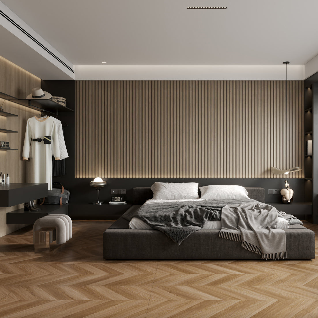 1200x600mm 的黃金比例規格,不僅保留了大尺寸瓷磚的宏偉與通透感,還避免了鋪設超大瓷磚的複雜與浪費。它大幅減少了地面或牆面之間的接縫,使空間的視覺效果更加連貫統一。特別適合客廳、臥室、走廊和書房等大型空間。即使在小空間中,也能通過切割和拼接創造靈活的造型。瓷磚表面經過霧面防滑釉處理,觸感溫潤細膩。光線折射柔和且不刺眼,無論在暖光或冷光條件下,都能呈現低調奢華的質感,輕鬆適應各種裝修風格。