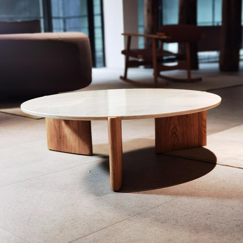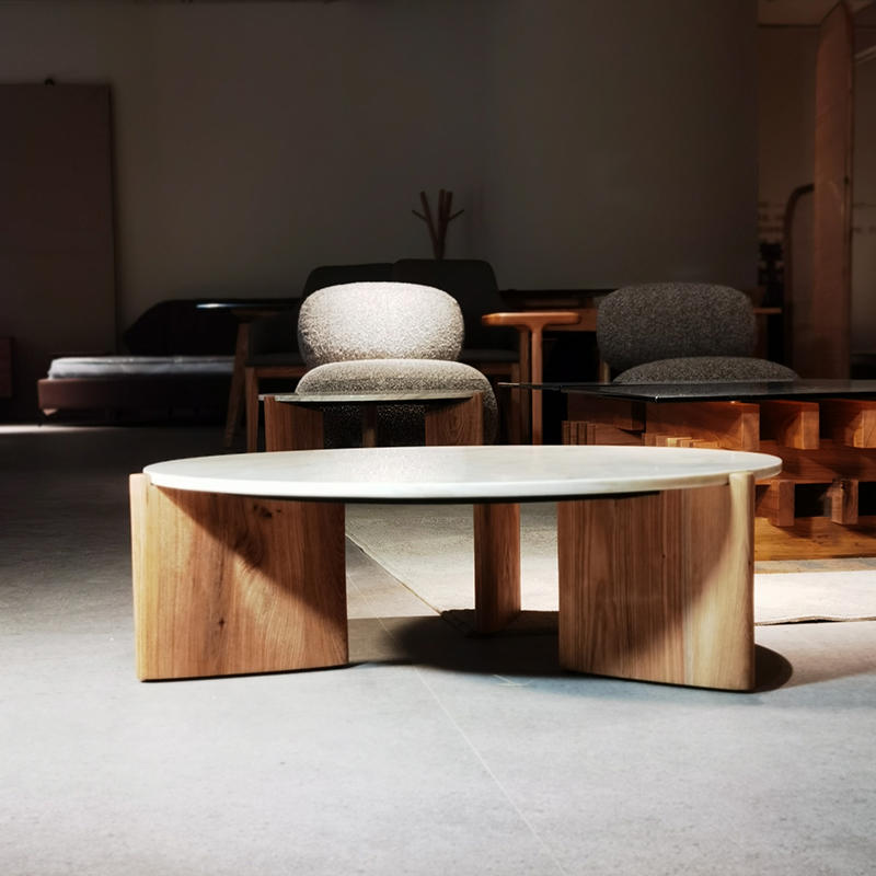 這款茶几採用精選老榆木製成。木材經過自然風乾處理,確保含水量穩定,不易變形或開裂。桌面使用進口天然石材,每一塊皆獨一無二,帶有隨時間累積的溫潤質感。簡約流暢的線條設計,不僅保留實木家具的樸實韻味,也適合多種家居風格。不僅是泡茶品茗的實用器具,更是提升客廳風格的裝飾品。在悠閒的午後,泡壺熱茶,圍坐在榆木茶几旁,指尖觸摸天然木紋的質地,感受實木帶來的溫暖質感。它是朋友聚會時放置點心飲品的實用平台;獨處時則化身為臨時的閱讀與工作書桌,兼顧美觀與實用,為生活增添儀式感。
