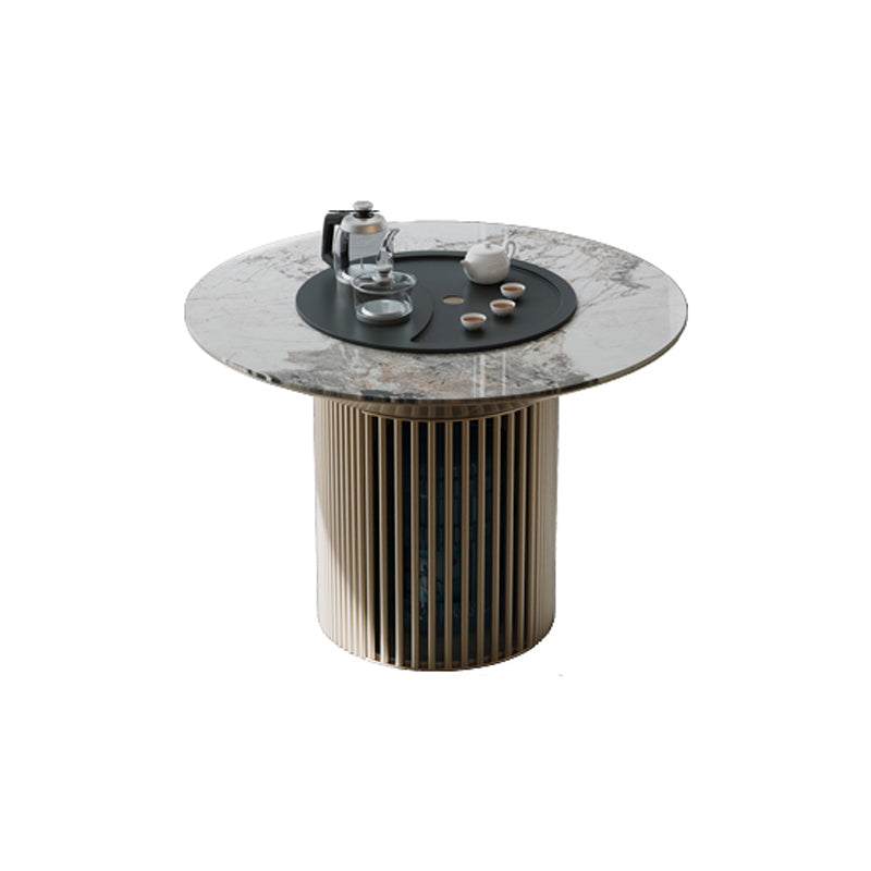 在當代茶室設計中,義大利輕奢風格以其簡約而精緻的美學以及結合質感與實用性的特點,成為追求品質生活者的首選。這款圓形茶桌完美結合了岩板桌面的堅韌質感與不鏽鋼桌腳的現代風格。圓形設計消除了空間的銳利感,為您的茶室營造出優雅、舒適且時尚的品茗氛圍。它不僅是茶事的實用載體,更是展現您品味的空間藝術品。