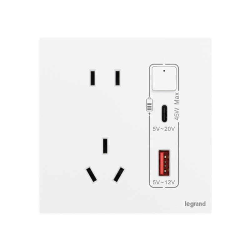 五孔帶USB 45W / 玻璃纖維複合PC / 86x87mmT03-KG-TAOCI-27 $360.00/每項 |